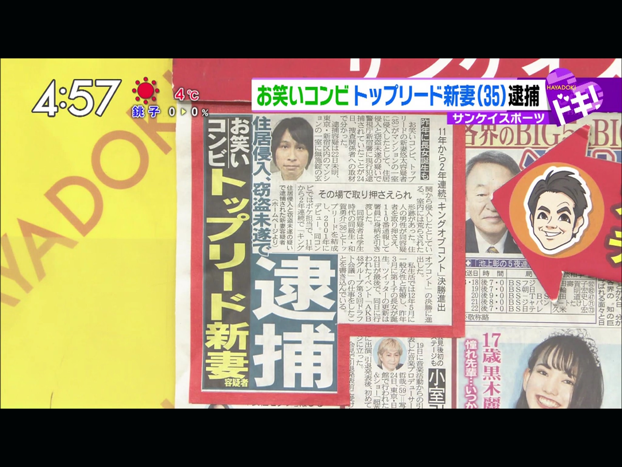 【侵入し窃盗未遂 芸人の男逮捕】マンションの一室に侵入したとして、住居侵入と窃盗未遂の疑いで、お笑いコンビ「トップリード」の新妻悠太容疑者が現行犯逮捕されていたことが判明。一部容疑を否認しているという。 https://t.co/GZW3F1bmHW