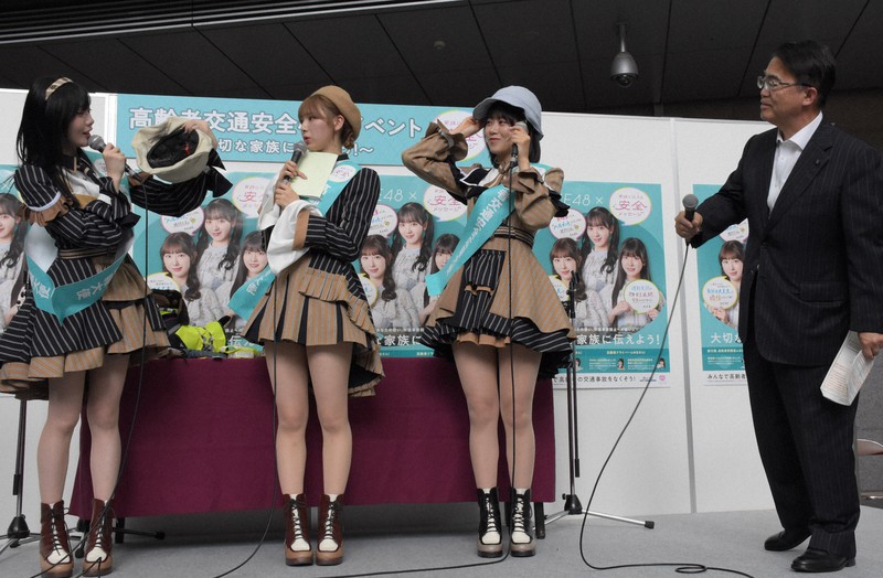 SKE48「自転車ヘルメット着用を」 高齢者に交通安全呼びかけ