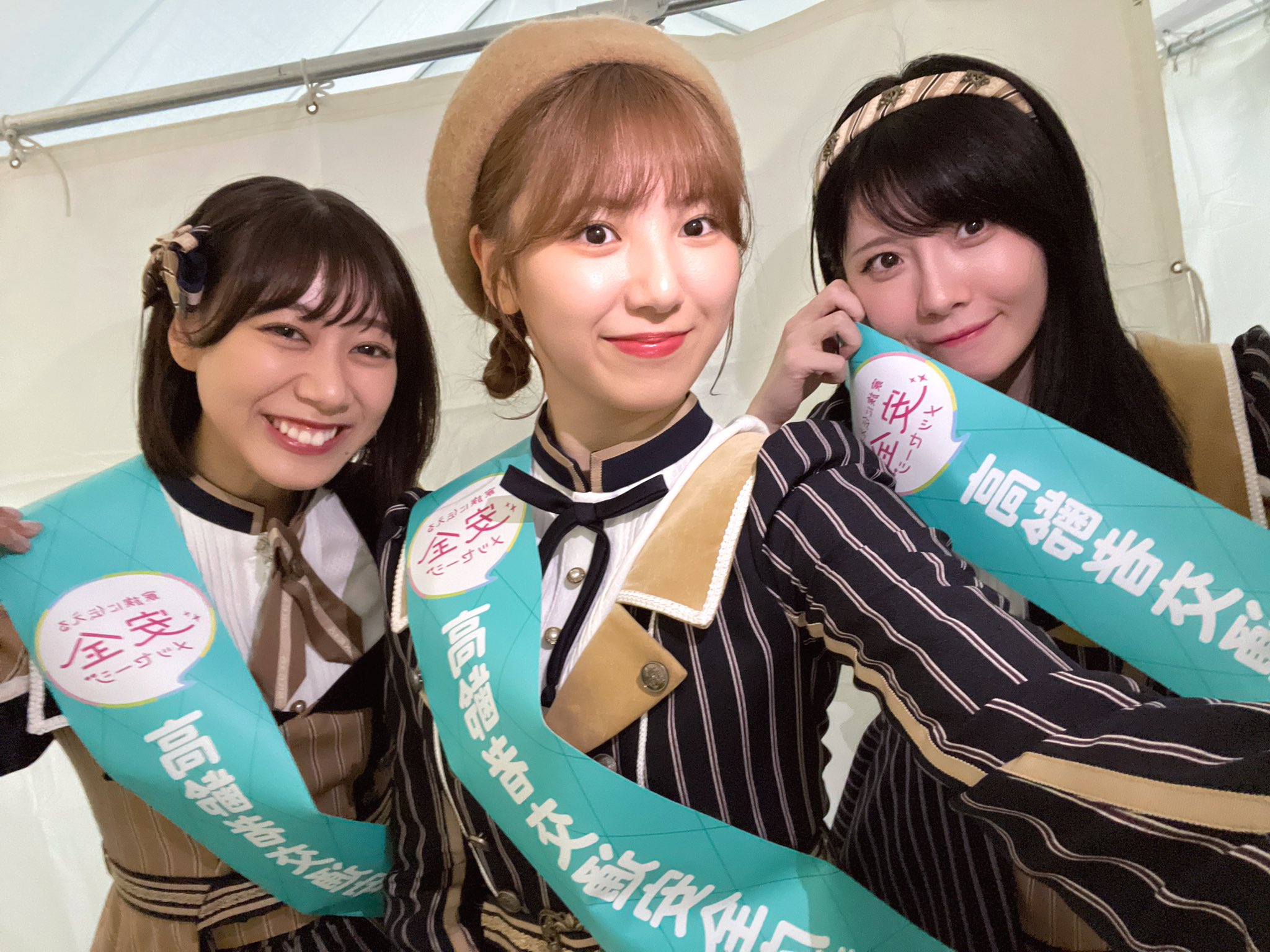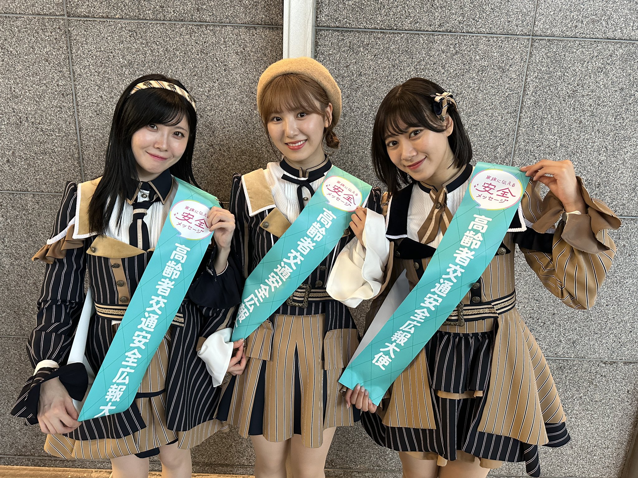 ②高齢者交通安全広報大使の任命式では、SKE48の井田玲音名さん、菅原茉椰さん、谷真理佳さんを任命し、私からたすきを贈呈しました。