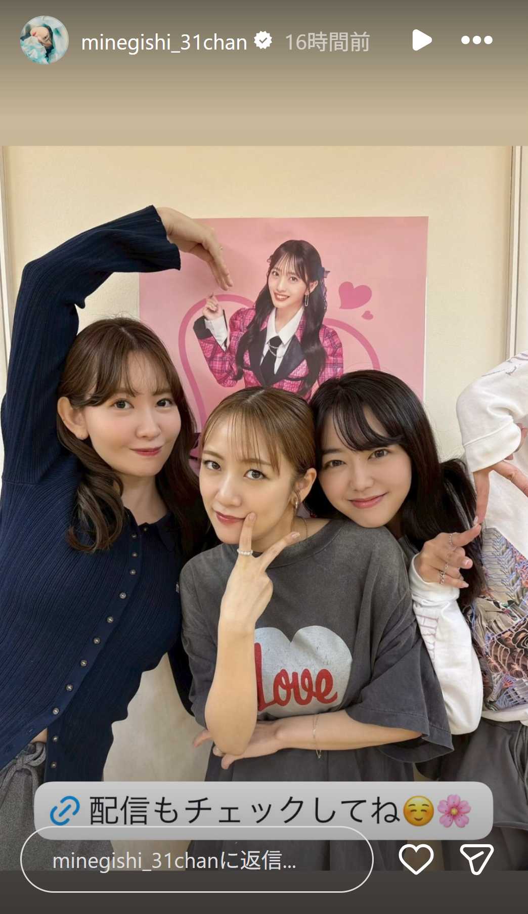 向井地美音さんの卒業コンサートに出演された高橋みなみさん、小嶋陽菜さん、峯岸みなみさんのSNSをまとめてみました。